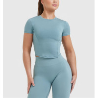 Short sleeve slim fit tees second skin moisture-wicking gym shirts for ladies
