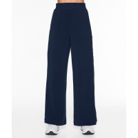 Elastic waist wide leg cotton fleece pants with buttons comfortable cozy trousers