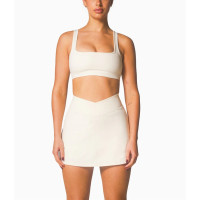 Women's padded reversible sports bra medium support yoga bralette with wide strap