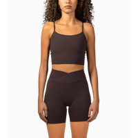 Scoop neck padded tank with spaghetti straps sleeveless cropped bra top
