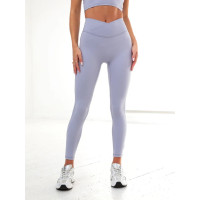 Crossover waist seamless front yoga leggings ankle length form fitting fitness tights
