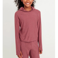 New arrival lightweight performance hoodie for girls side ruched long sleeve hooded t shirts