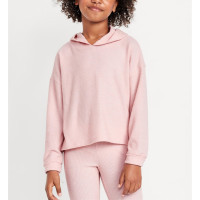 Cropped rib cotton cozy hoodies for girls loose fit drop shoulder cute sweatshirts with hood