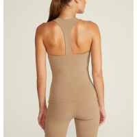 Women's fitted t back ribbed sports tank with wide strap hip length tank top