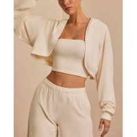 Women's brushed hooded cropped shrug super soft long sleeve cotton hoodies