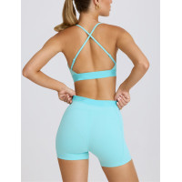 Women's scoop neck back cross sports bra medium support gym bra with adjustable straps