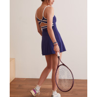 New arrival hollow back color block tennis dress built in bra one piece double strap A line sporty dress