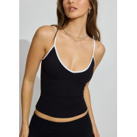Women's contrast color v neck cami tops basic style yoga crop with removable padding