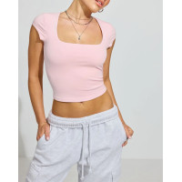 Women's square neck short sleeve crop tee versatile lightweight active t shirts