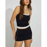 Women's active mini skirts with piping mid rise stretchy skorts with built in shorts