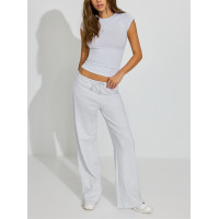Women's low rise french terry wide leg sweatpants with adjustable waist