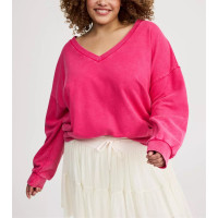 Women's v neck cotton blend pullovers drop shoulder relaxed fit sweatshirts