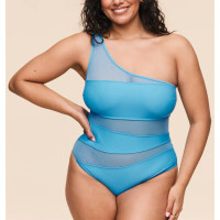 Women's one shoulder mesh spliced swimsuits with removable padding