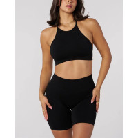 Women's halter adjustable sports bra sleeveless supportive back cross crop top
