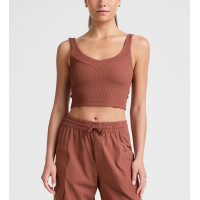 Women's ribbed v neck wide strap sports tank slim fit padded longline crop top