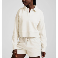 Women's polo neck cropped cotton fleece sweatshirts athleisure hoodies