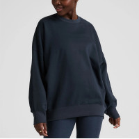 Women's crew neck oversized hip length sweatshirts drop shoulder cotton fleece pullovers
